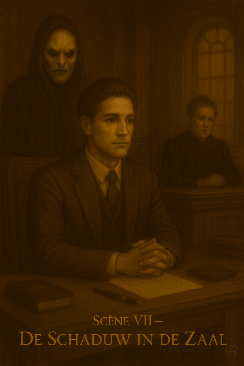 In the courtroom sits the charming man at the defendant’s bench, polite and composed, as if he doesn’t belong there. While the room whispers and the judge keeps a stern eye, the lawyer’s gaze sweeps through the audience. There, in the darkness of the towering pillars, someone moves just a little too quickly — too sharply. A shadow with no place, yet undeniably present. The detective observes, notes, remembers. The air grows heavy, as if the very walls whisper: the truth has not yet been revealed.