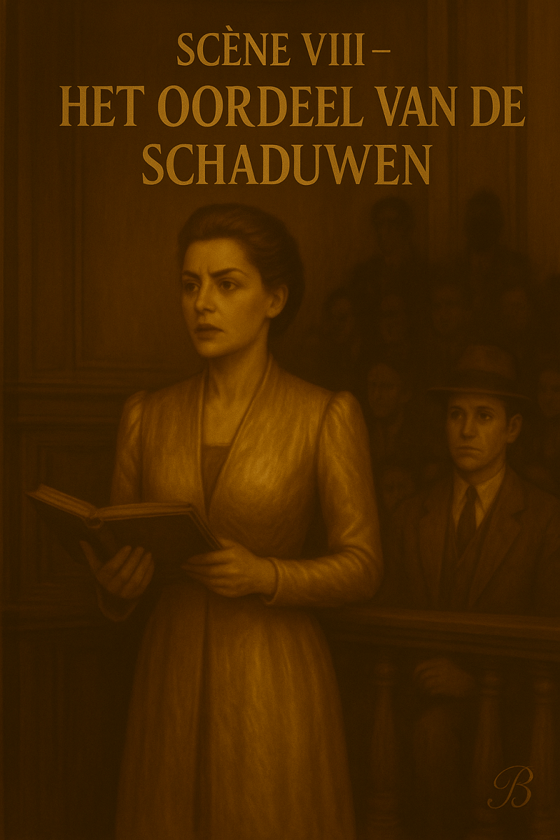 Een stilte daalt neer, de lucht lijkt te trillen van verwachting. De verdachte kijkt verbaasd op, alsof hij voor het eerst de mogelijkheid voelt dat gerechtigheid aan zijn zijde kan staan.